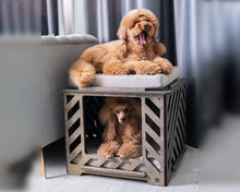 It's not just a comfy place for your pet; it doubles as a neat coffee table or a bedside table. Gone are the days of those big, clunky metal crates. Our crate is a modern, stylish option that looks great in your home. It's like a fancy dog house that fits right in with your furniture.